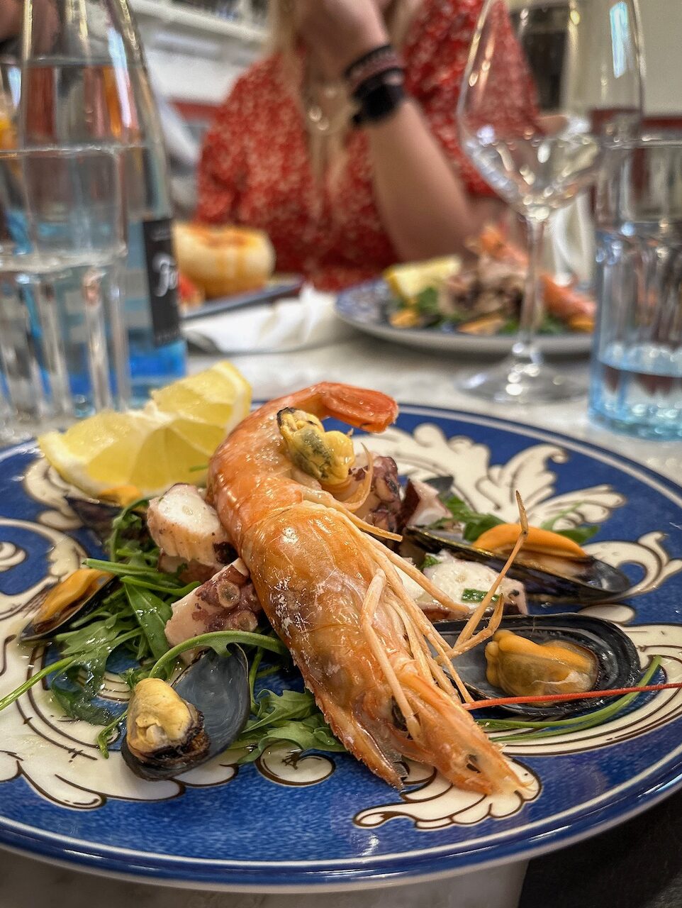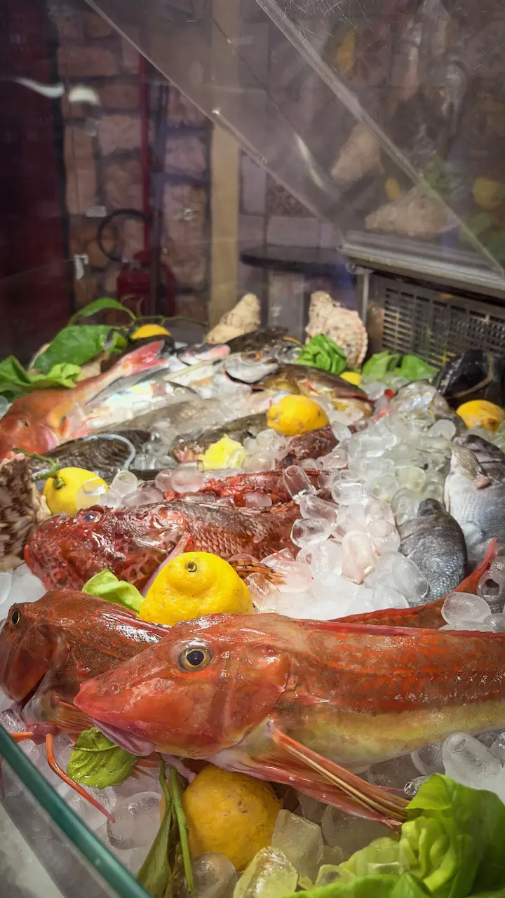 Next come classic Neapolitan dishes that taste straight out of Nonna’s kitchen: tender marinated seafood salad, steaming spaghetti frutti di mare, and pasta alla Napoli – simple, yet perfectly seasoned. Naturally, a traditional Caprese salad makes an appearance too.