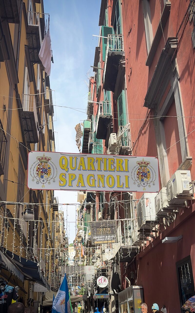 A stroll through the Quartieri Spagnoli is a must. This neighborhood is pure Naples: loud, colorful, tight, wild, and bursting with life. Once home to Spanish viceroys’ soldiers, today it’s packed with locals, artists, students, and newcomers all living side by side. Life unfolds on the streets here, among fish and vegetable stalls, buzzing Vespas, laundry lines, and tiny espresso bars.