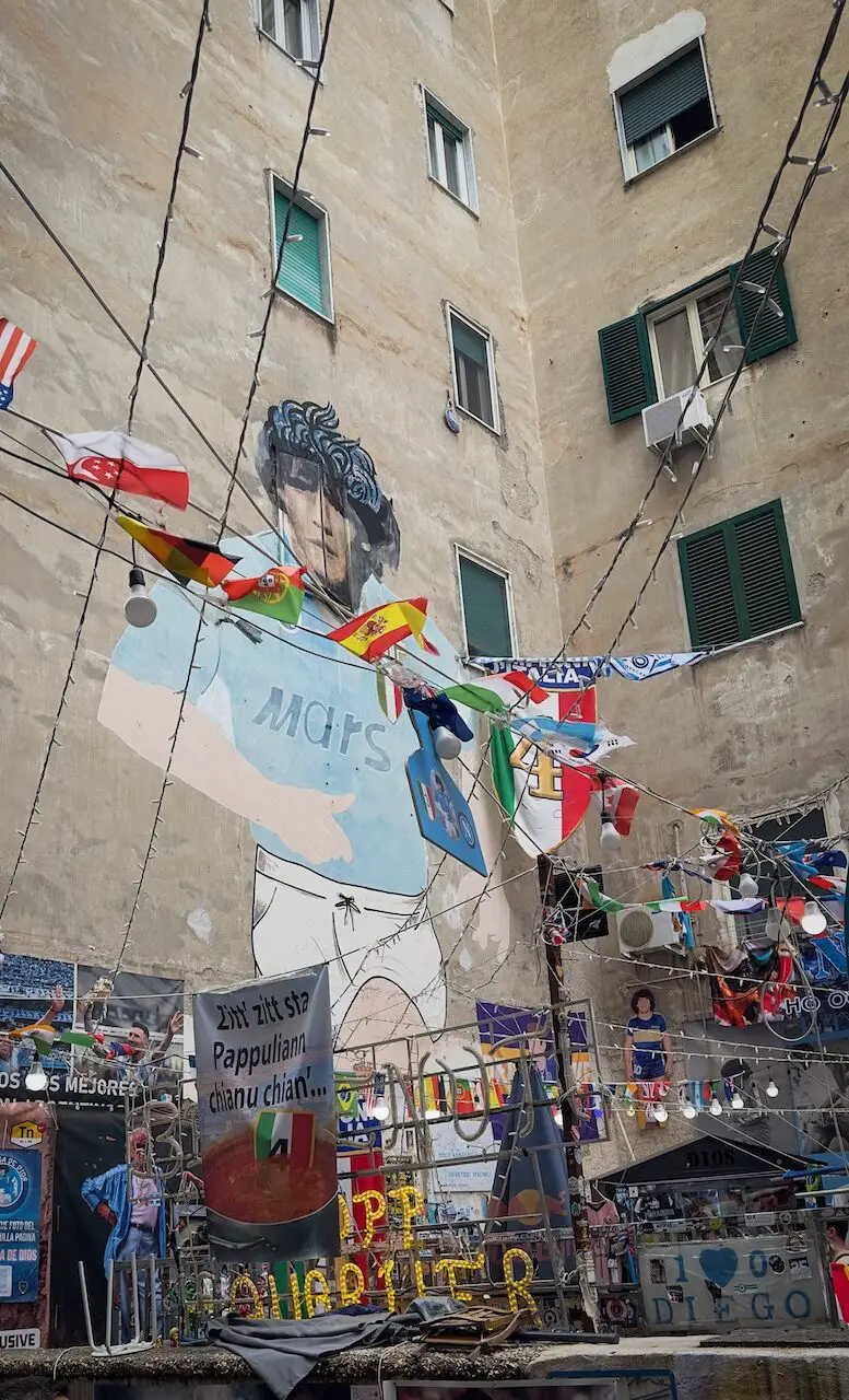 Another must-see is the Maradona Shrine—a quirky yet moving tribute to the football legend who made SSC Napoli immortal. To truly feel Naples, you have to experience it. Amid street altars, fan graffiti, and flickering candles, it’s clear: here, football isn’t just a game, it’s a religion. Fans practically make a pilgrimage, and Maradona isn’t just a player, he’s a saint. Forza Napoli isn’t a slogan in these streets; it’s a lived, loud, and passionate identity.