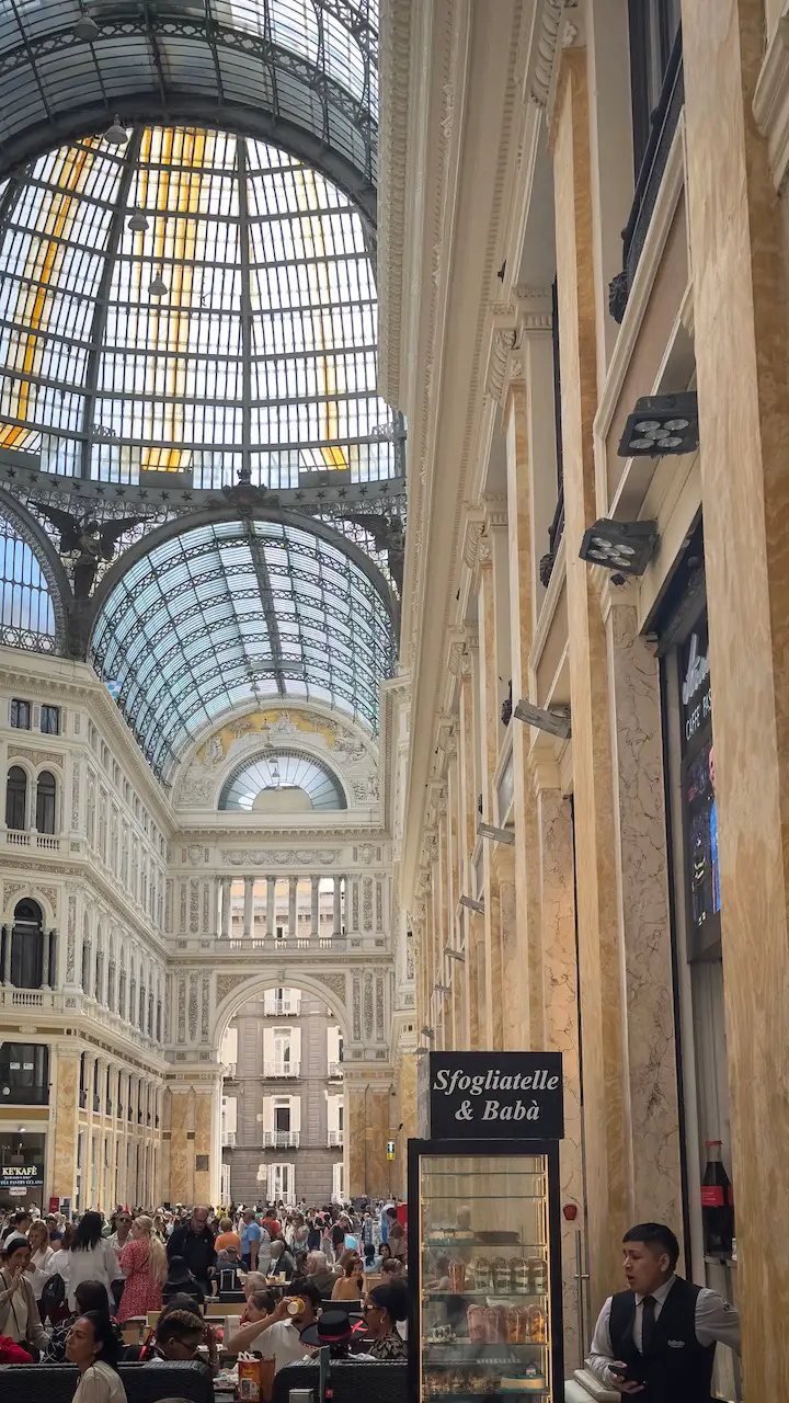 Our walk continues through the impressive Galleria Umberto I, an architectural jewel with a majestic glass dome, marble floors, and a touch of Belle Époque charm. Before returning to the hotel, we make one last stop for the legendary graffa. Still warm, fluffy, and coated in sugar, this doughnut-like treat tastes like a hug in pastry form. Crispy on the outside, soft on the inside, and the sweetest way to end our walk.