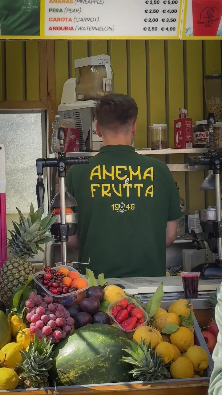 If you’re already there, don’t miss a limonata at Don Alfredo—Naples-style, wide-legged like a true local. No joke, it’s a real ritual! Order: “Una limonata a cosce aperte, per favore!, better known as the “Open Legs Lemonade.” Then everything happens fast: freshly squeezed Sorrento lemons, cold soda water, a spoonful of baking powder, and suddenly it fizzes and bubbles like a mini volcano. One big gulp, and you’re drinking it alla Napoletana, just as it should be.