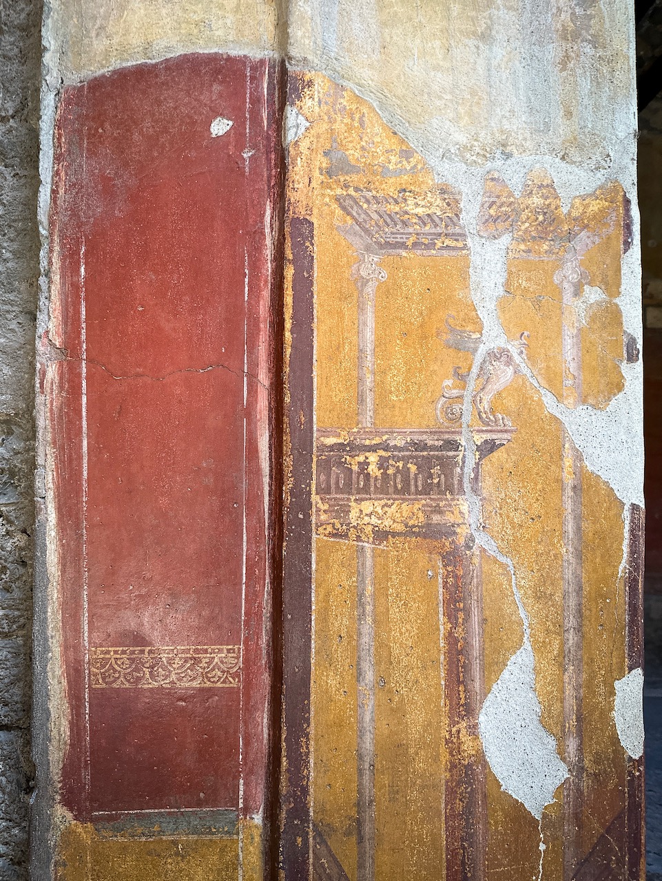 We walk along the Via dell’Abbondanza, Pompeii’s “Fifth Avenue.” Nearly 900 meters long and lined with workshops, taverns, homes, and shops, it was once as lively, colorful, and bustling as any modern shopping street.