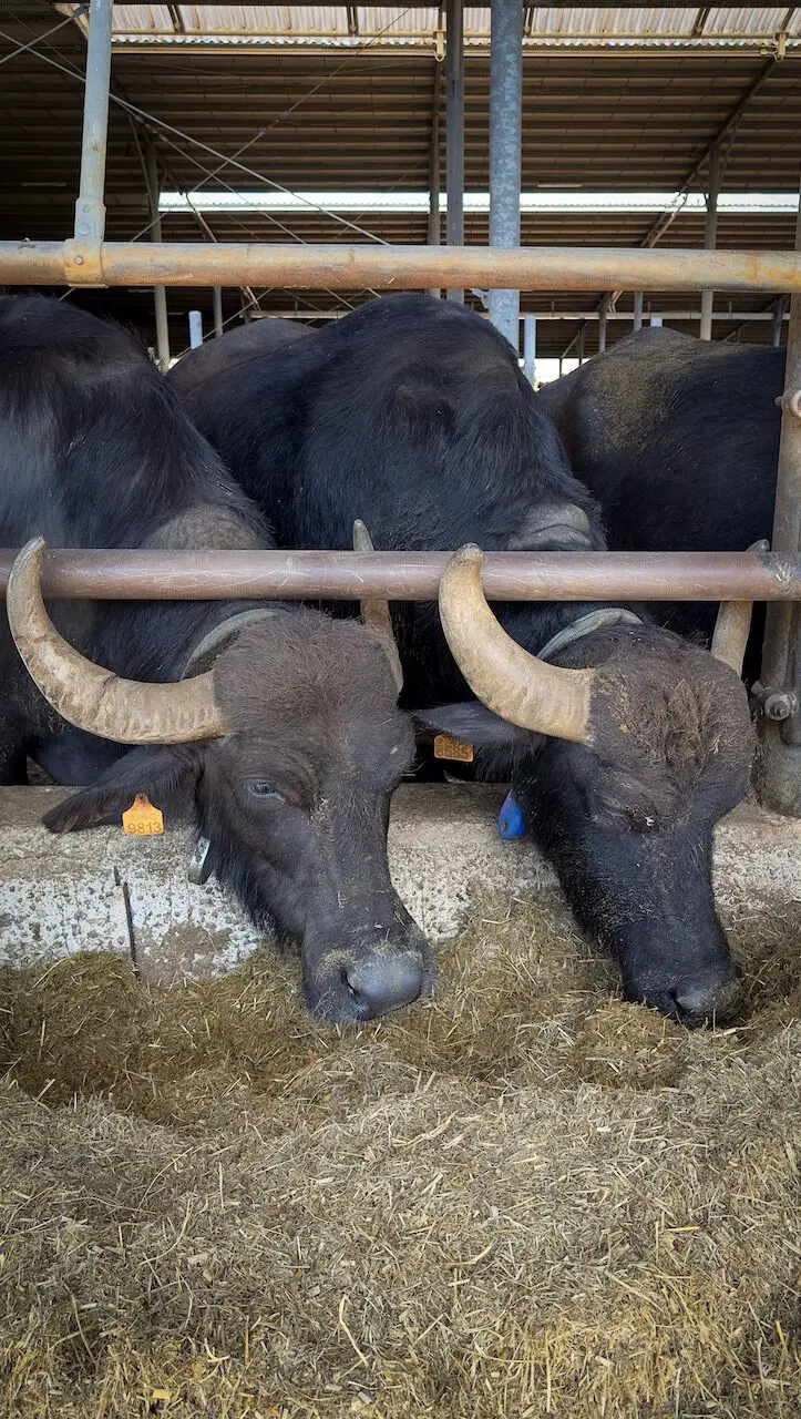 We visit the organic Tenuta Vannulo estate, home to around 600 black water buffalo. Here, they graze on lush pastures, bathe in pools, and even enjoy brush massages in special shower stations. All their feed is grown on the farm under strict controls, and they are treated only with homeopathic remedies. The buffalo are milked only when they feel like it. No pressure, just nature’s rhythm.