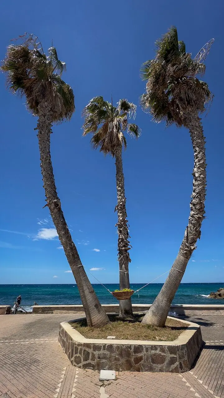 From the castle, we head back toward the harbor for lunch at Un Attimo di Vino. Theresa, the wife of owner Raimondo, is in the kitchen herself. Everything comes straight from the island—lemons, vegetables, bread, and even the olive oil is from their own groves. Through the window, the view stretches across the sea to gentle vineyards, a life lived between waves, vines, and the stove, pure simple life bliss.