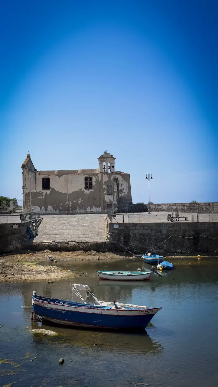 From the port, we wander straight toward the Castello Aragonese, a mighty fortress rising from the rock. Along the way, colorful little shops invite us to stop and browse.