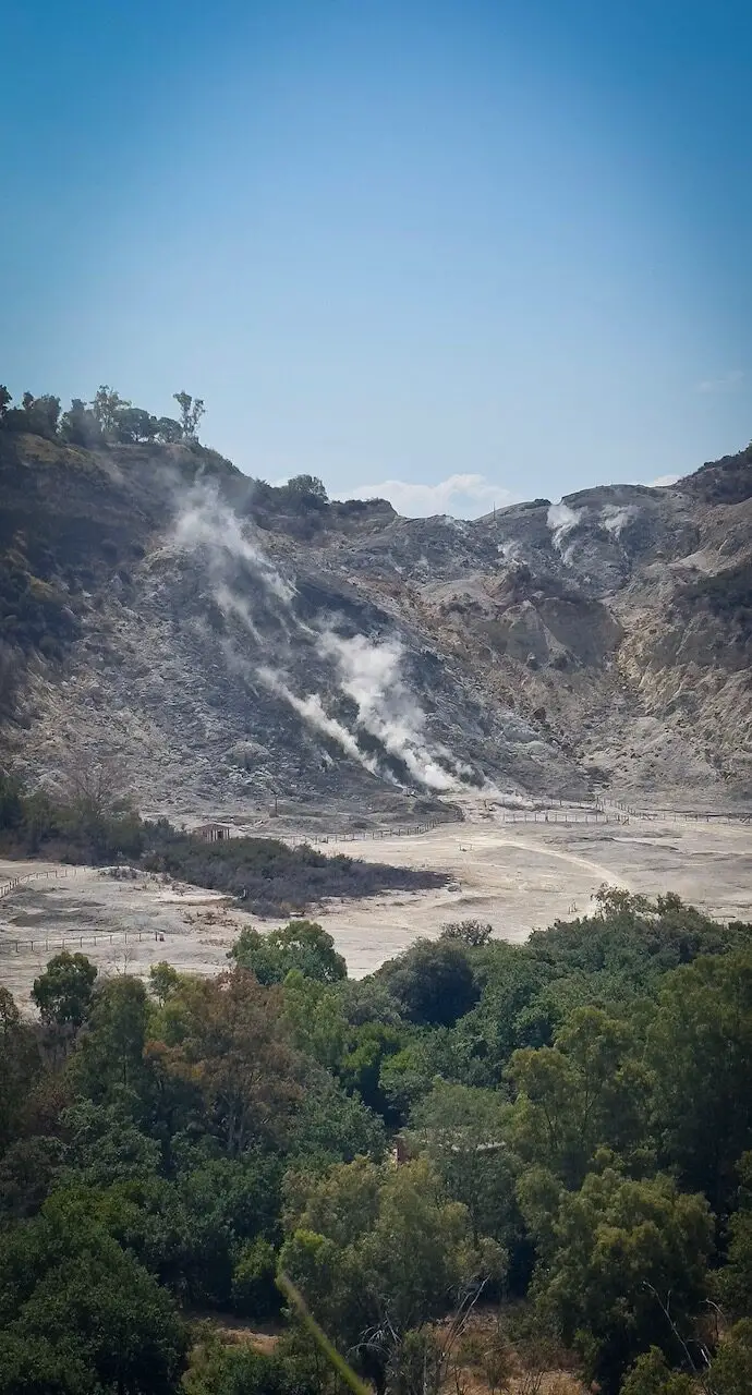 The next morning, we take a short bus ride from Naples into a landscape that seems alive. The Phlegraean Fields are a sleeping supervolcano, an extraordinary mix of myth, mystery, and quiet danger. Even the ancient Romans knew the power of this place: they built baths and temples here, soaked in the hot springs, and believed they had found the gateway to the underworld.