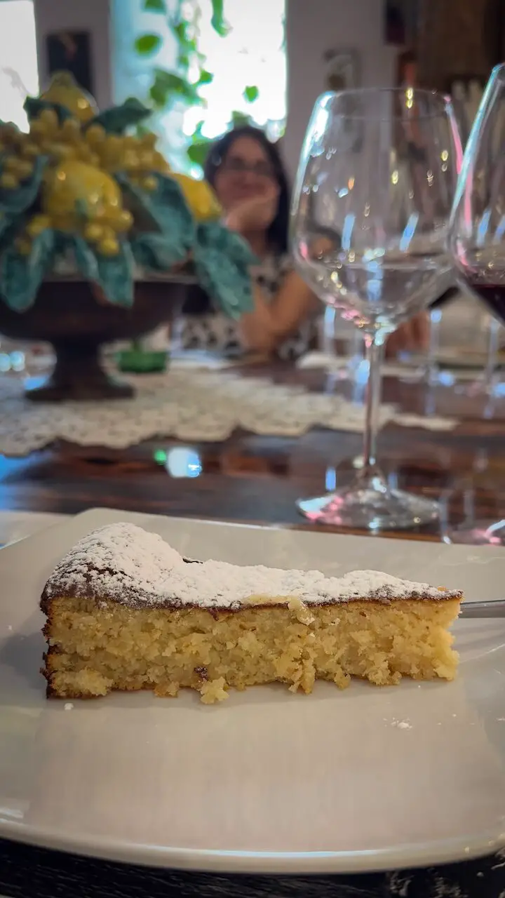 For dessert, Theresa presents her Raimondo Cake: an almond-lemon creation made with Sicilian almonds, completely flourless, and utterly divine. One last sip of Biancolella, and the experience feels complete.This is Ischia at its most magical quiet, flawless, and unforgettable. I know I’ll be back.