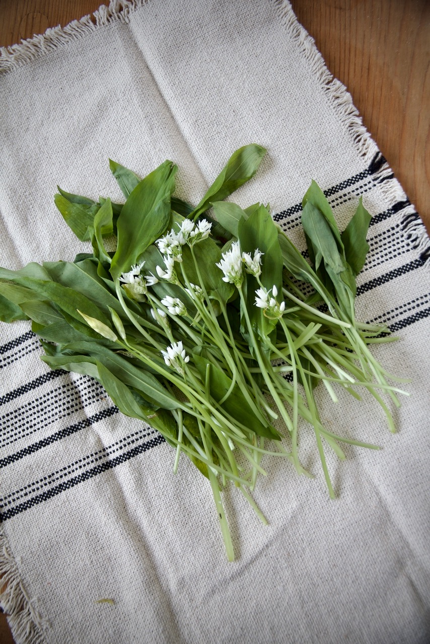 In the meantime, wash the wild garlic, remove the stems, and dry well.