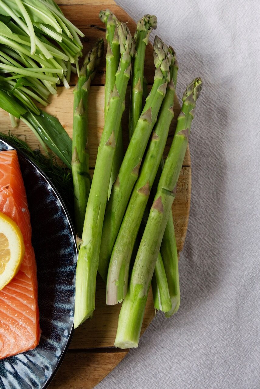 WILD GARLIC WAFFLES WITH SALMON AND GREEN ASPARAGUS FOR EASTER